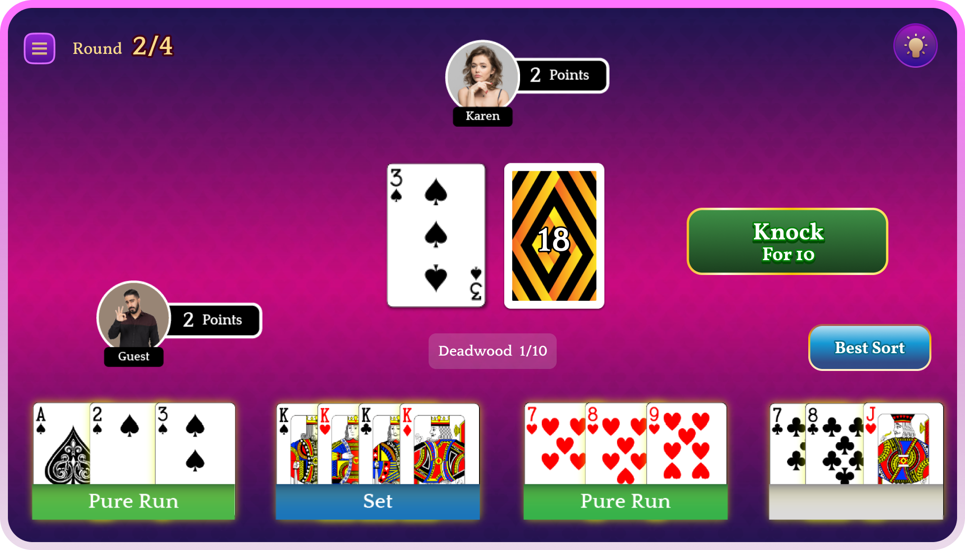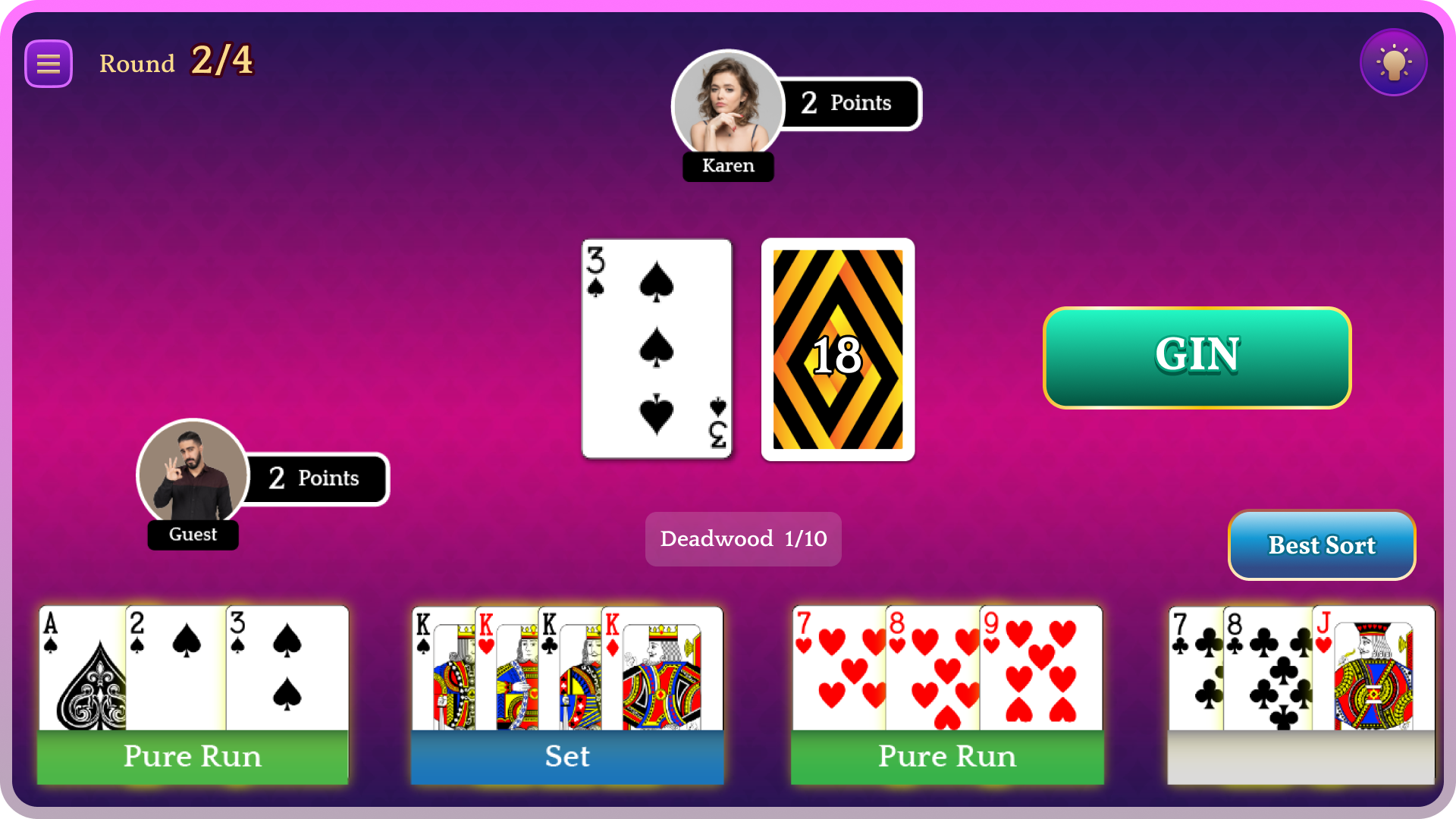 Enjoy unstoppable and offline fun with easy to play Gin Rummy card game